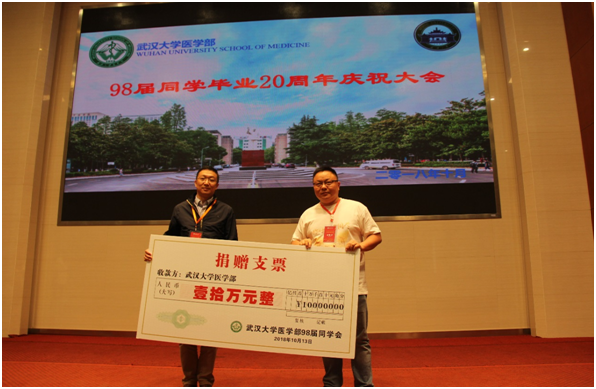 感恩于母校的关怀和培育,感激于老师的关爱和奉献,98届校友当天向母校捐资10万元作为启动资金,资助在校困难学生。
