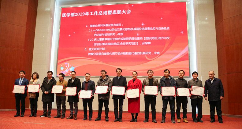 党工委副书记何小华宣读表彰文件,校领导向在学校“双一流”建设和一流医科发展中作出突出贡献的集体和个人颁发荣誉证书。