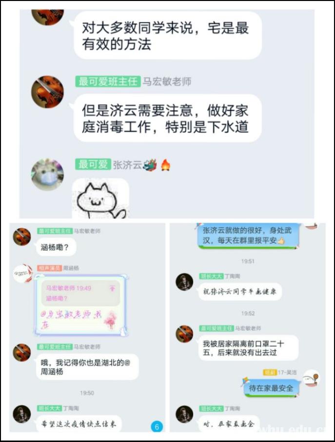 学院学工、研工队伍积极汇聚班主任、导师以及学生骨干力量,构建抗“疫”网格管理群,共同做好疫情防控工作。在得知1名在籍研究生和1名西藏大学联合培养学生因“封城”滞留武汉后,辅导员第一时间与两名同学确认情况,并每日进行跟进联系,帮助解决生活困难,同时做好心理疏导工作。除夕当晚,得知两名同学因为发热被地方医院隔离观察后,辅导员第一时间与该生确认身体、隔离、亲密接触情况,并自除夕当日起,每日一对一联系了解隔离同学身体状况,直至解除隔离观察。目前学院研究生整体状况平稳,包括非全日制在内的全体研究生体温检测有序进行。