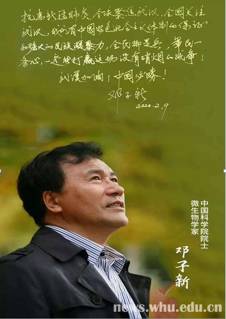邓子新院士题字为师生加油鼓劲