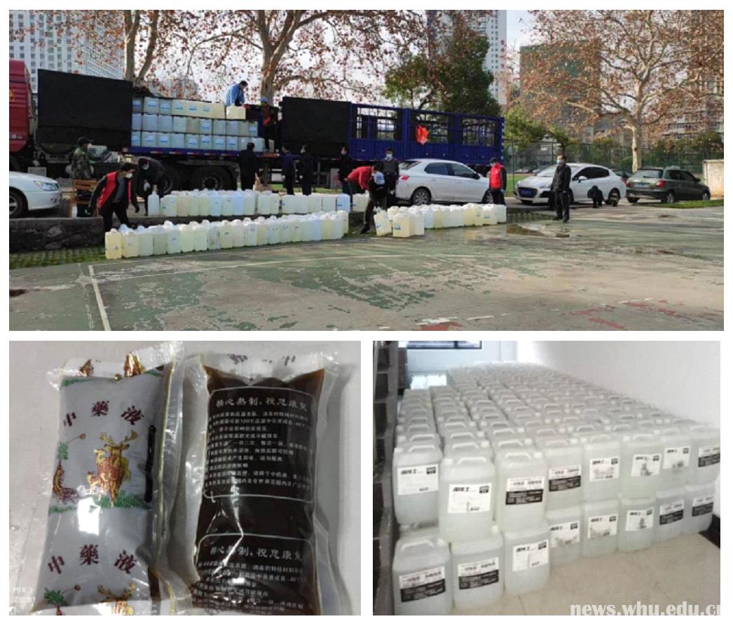 老师们为学校、学院募集的消毒液、中药等物资