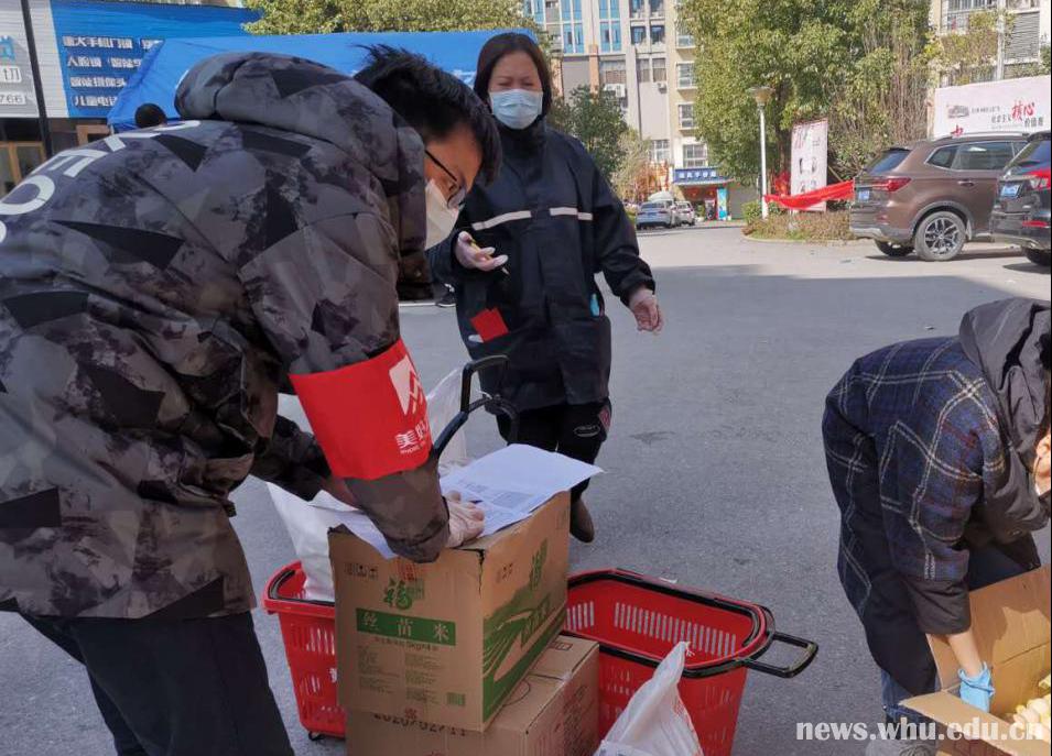 2017级博士生李芊芊在小区协助分发物资