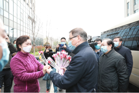人民医院东院参与抗疫的女医务人员达2040人,其中外省支援湖北的女医疗队员1097人,古稀之年的李兰娟院士已带队在这里连续工作一个多月。在大家共同努力下,医院有效提高了患者治愈率、降低了病亡率。应勇代表湖北省委、省政府和湖北人民,向全体援鄂医疗队队员特别是女性医务工作者致以节日的问候,对他们在抗击疫情中所作的贡献表示衷心的感谢和崇高的敬意。