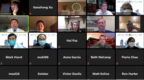人民医院感染科主任龚作炯教授、急诊科兼重症医学科主任魏捷教授、重症医学科副主任余追教授,就新冠肺炎疫情的诊疗和防控方法与美国俄亥俄州立大学的同行们进行了经验分享和交流。
