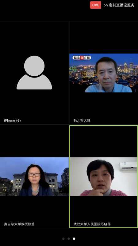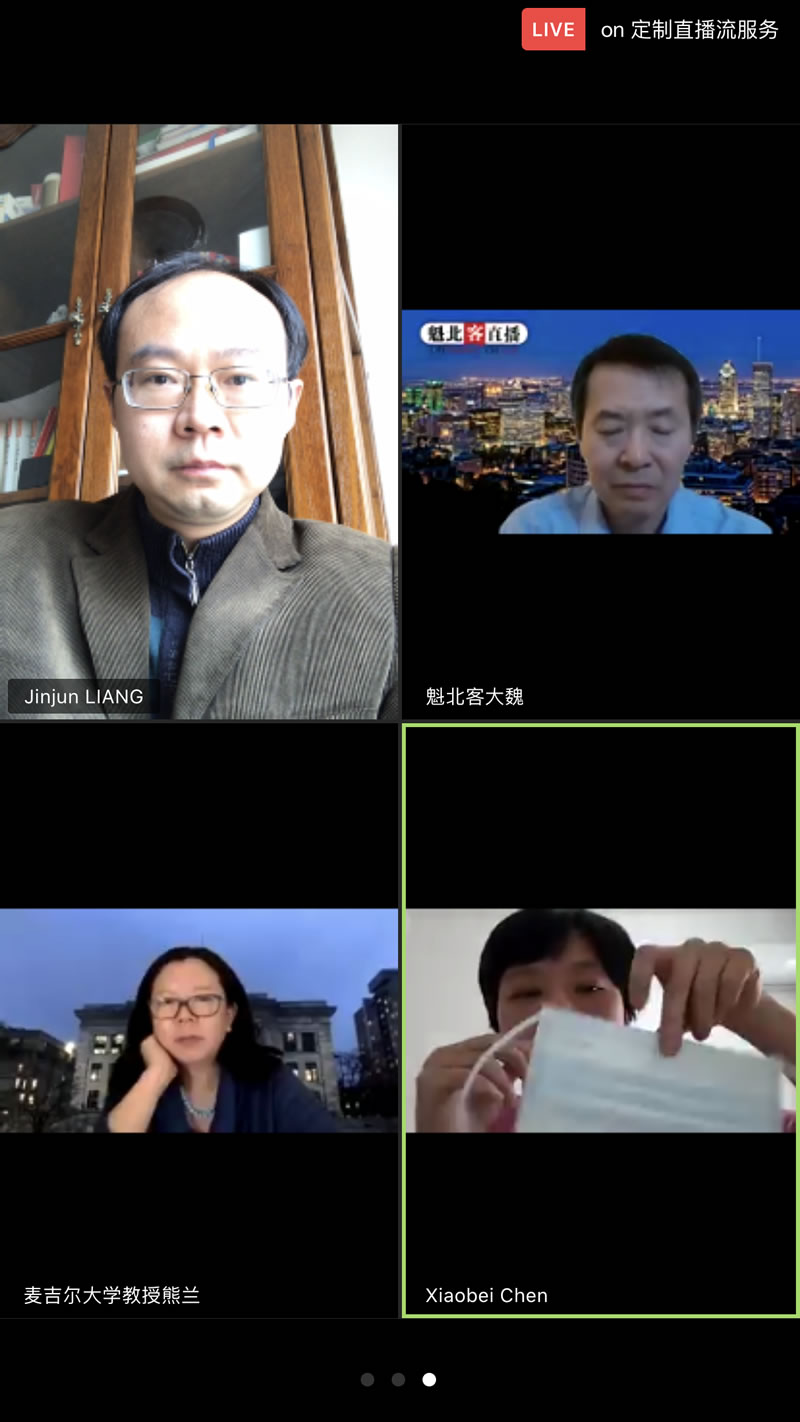 本站讯4月4日上午8:00-9:30(加东时间4月3日20:00-21:30),受中国驻加拿大蒙特利尔总领事馆邀请,Av解说 人民医院感染科副主任陈晓蓓教授向华人华侨介绍新冠肺炎疫情防控知识,家庭及高危人群防护知识,并回答观众提问。加拿大麦吉尔大学熊兰教授主持。通过魁北克TV和YouTube 直播,受到当地华人华侨的热烈欢迎,表示很及时很有帮助,并坚定了战胜疫情的信心。
