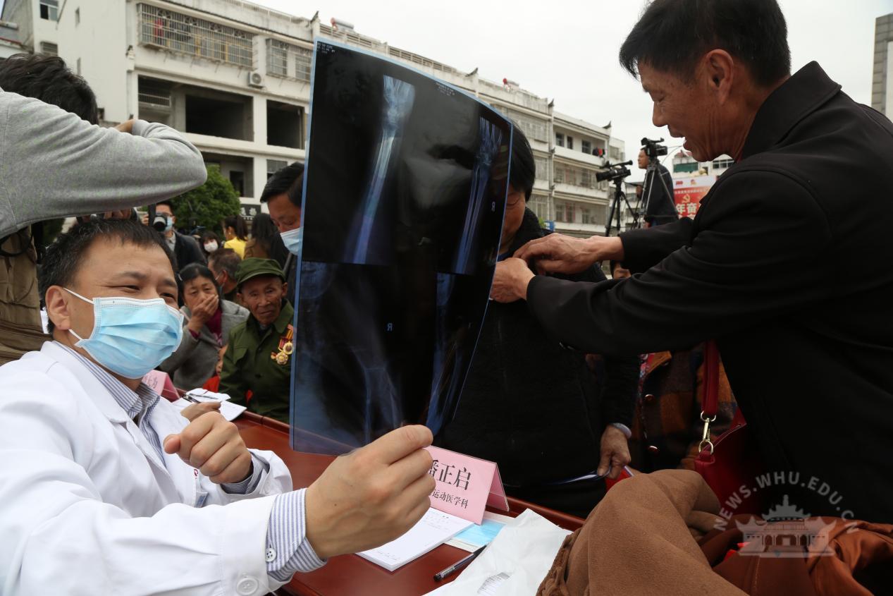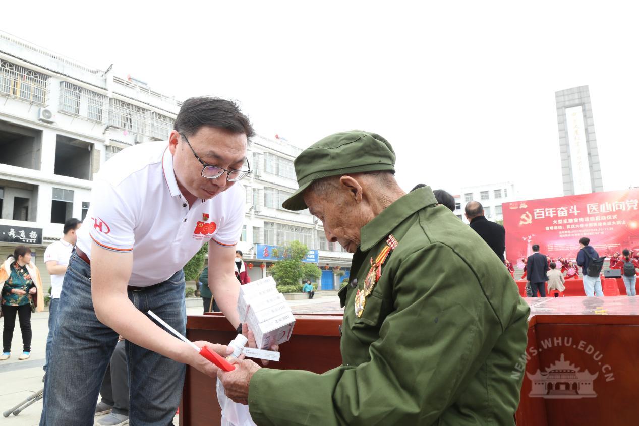 中南医院17位党员医生联合当地医疗团队,为七里坪镇的乡亲们义诊,并带来了价值数万元的免费药品发放给到场患者。武汉一家慈善机构也为需要帮扶的老军人及家属们捐赠30万元专项扶助基金。
