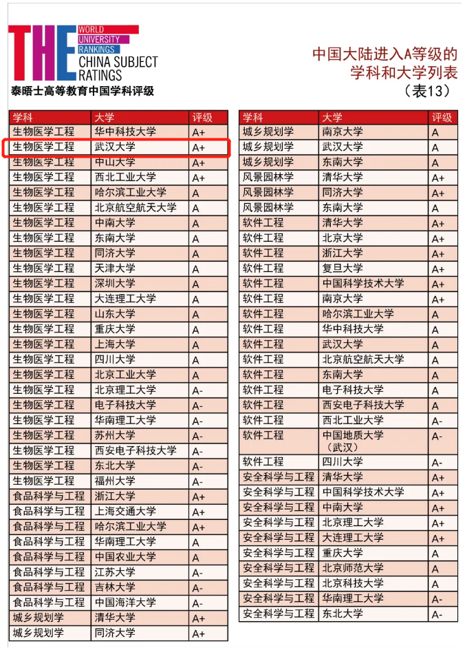 5月11日,泰晤士高等教育(THE)发布了第二届中国学科评级。此次评级涵盖90所中国大陆高校,以及全球1420所院校。评分采用中国教育部的学科分类法,涵盖89个科目,采用 A+ 至 C– 评分系统。