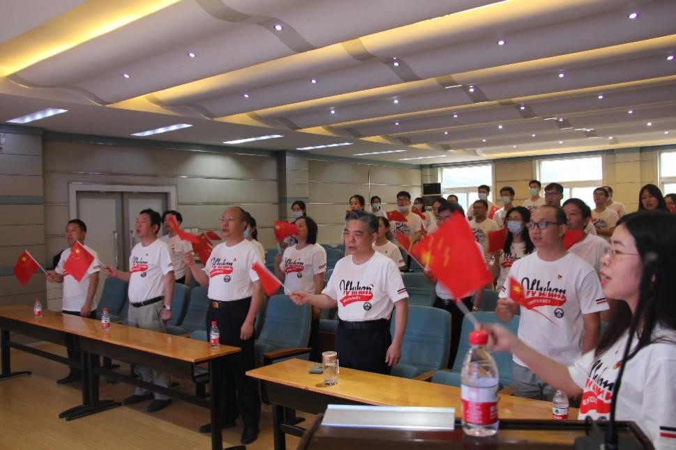 最后,全体党员挥舞五星红旗,齐唱《没有共产党就没有新中国》,用嘹亮的歌声、真挚的情感,唱出了心中的激情与梦想、使命与担当。