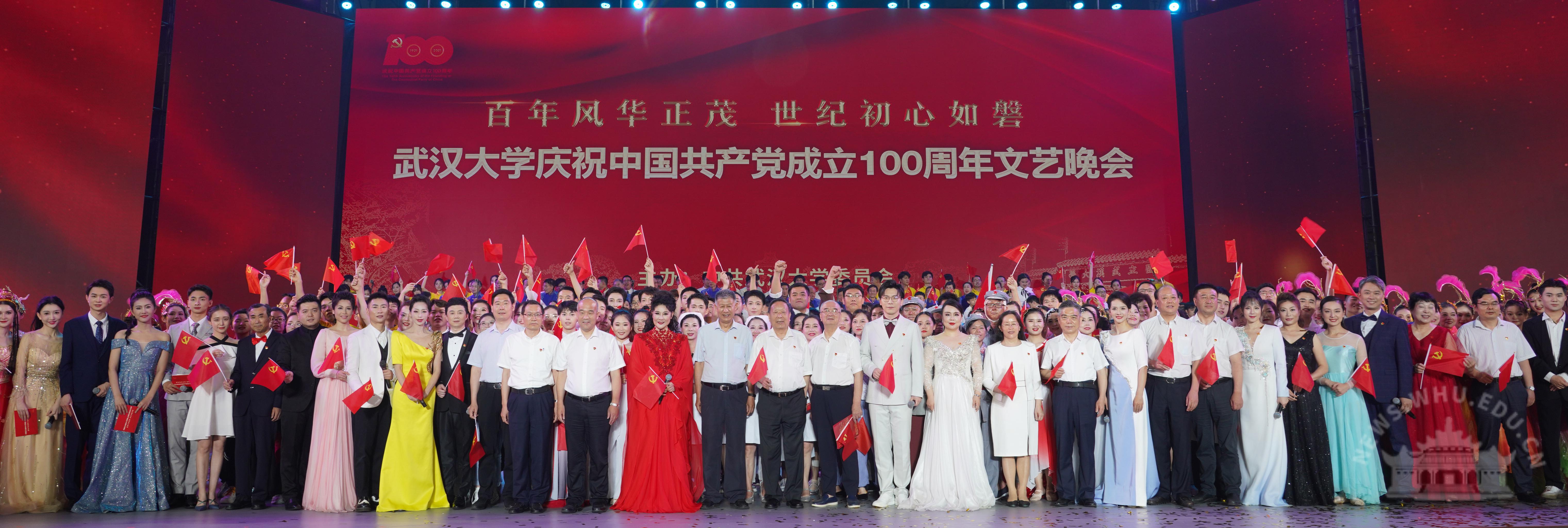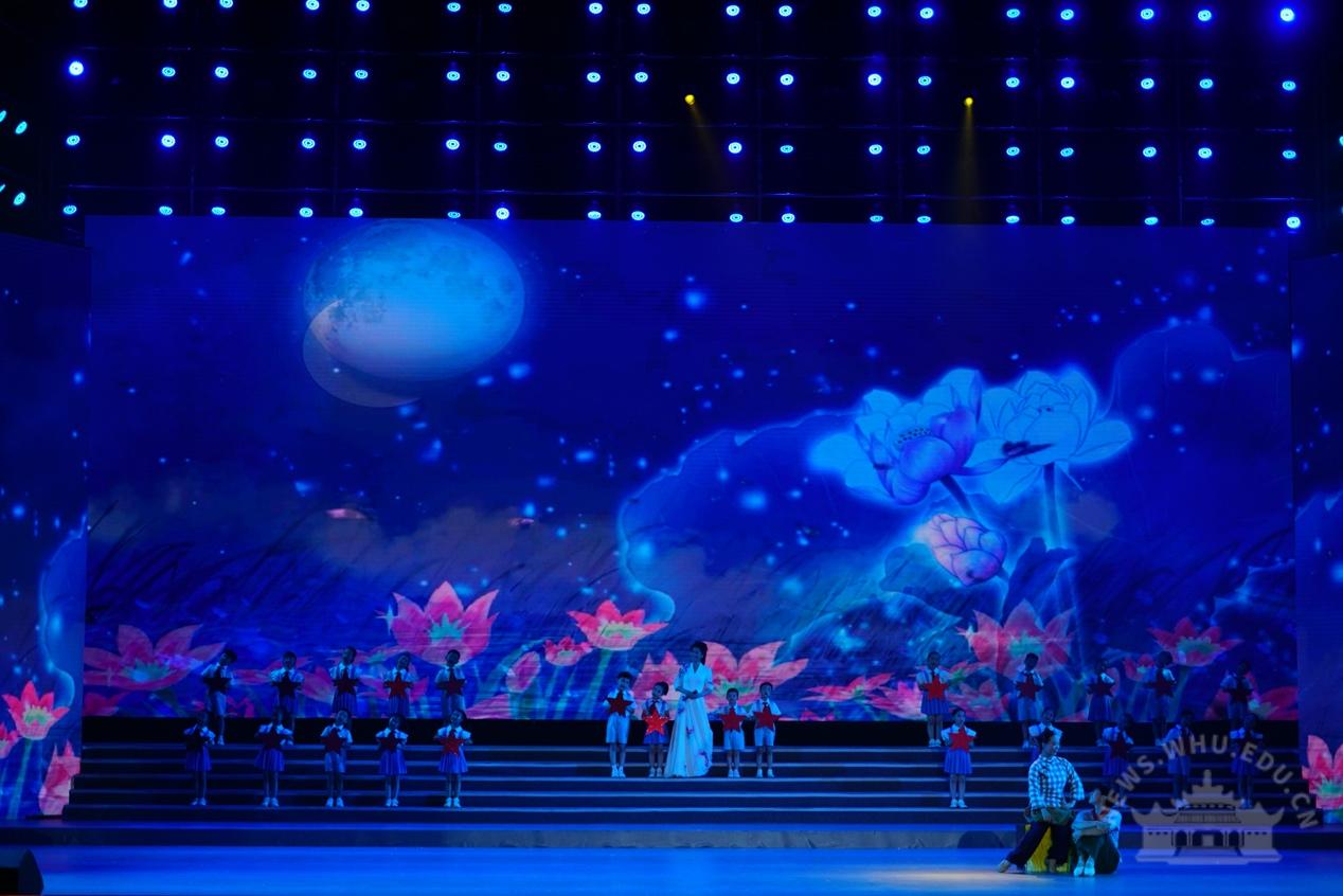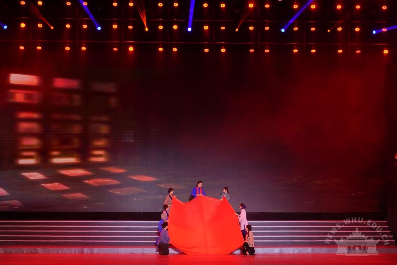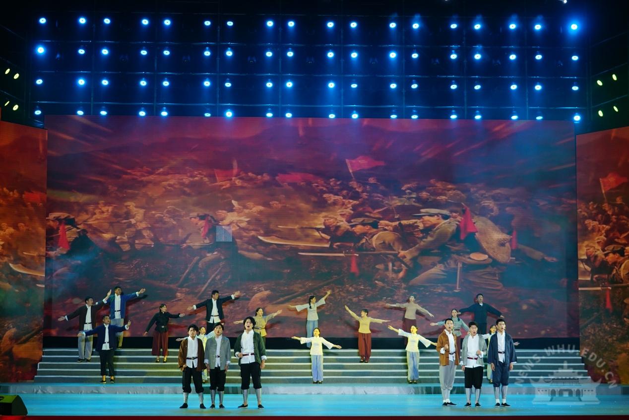 校党委书记韩进、校长窦贤康等全体在校的校领导,院士李德仁,人文社科资深教授於可训,优秀党员和“光荣在党50年”老党员代表,各二级单位负责人等,与5000余名师生代表一同观看演出。