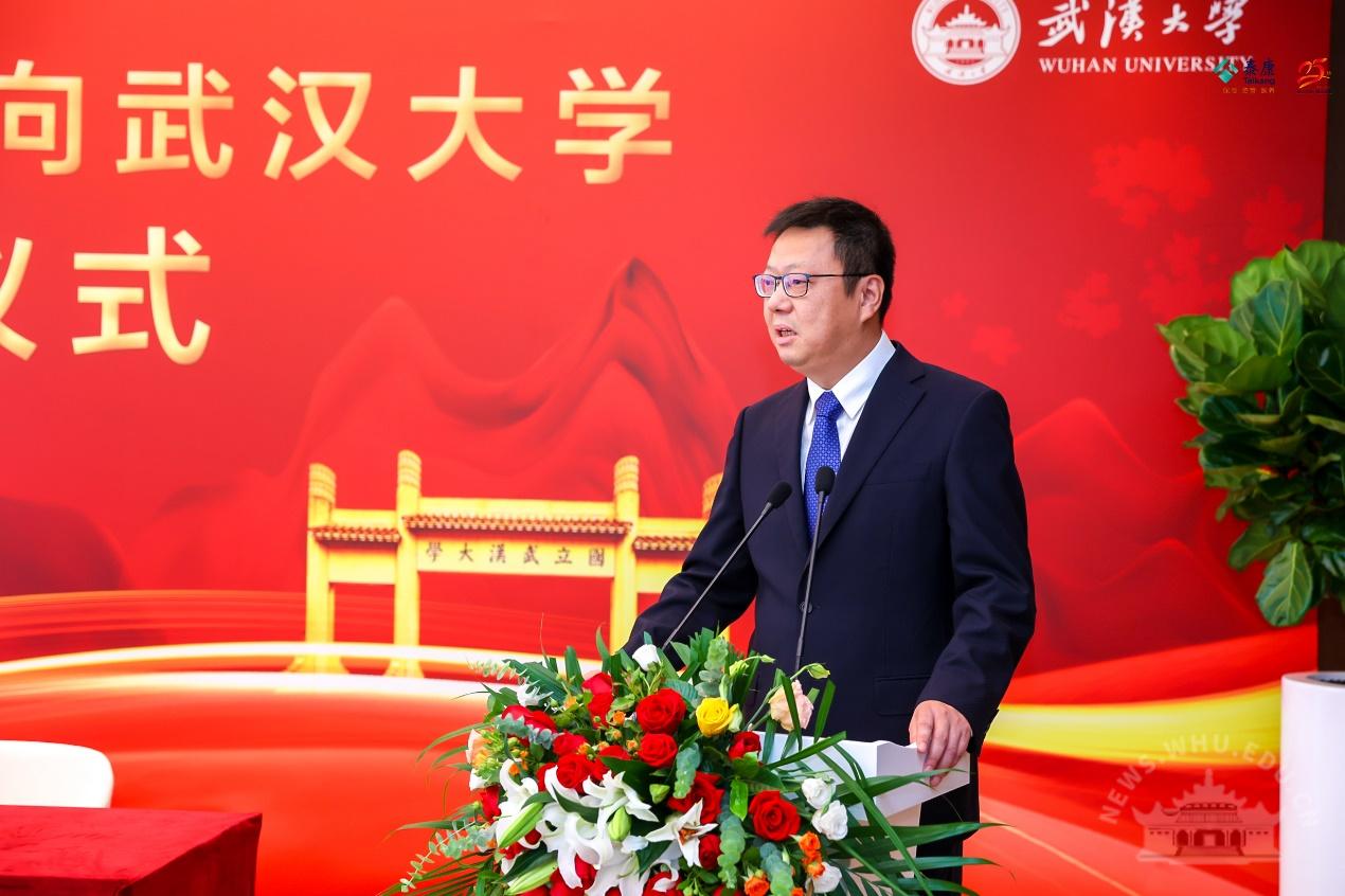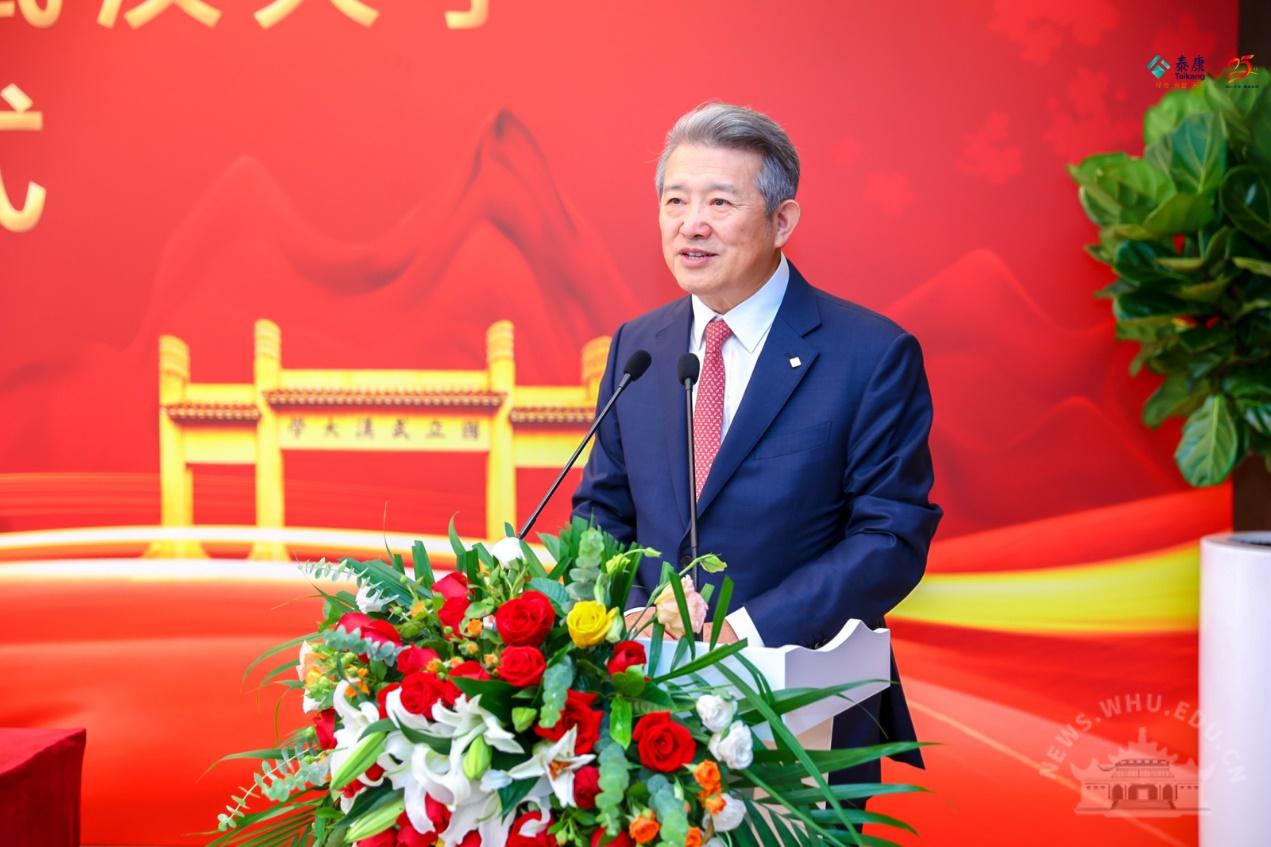 泰康保险集团总裁兼首席运营官刘挺军主持仪式。泰康保险集团管委会成员、董监事及股东代表,校领导韩进、窦贤康、吴平、唐其柱,武汉市副市长杨军,以及多位在京校友代表出席活动,共同见证这一激动人心的时刻。