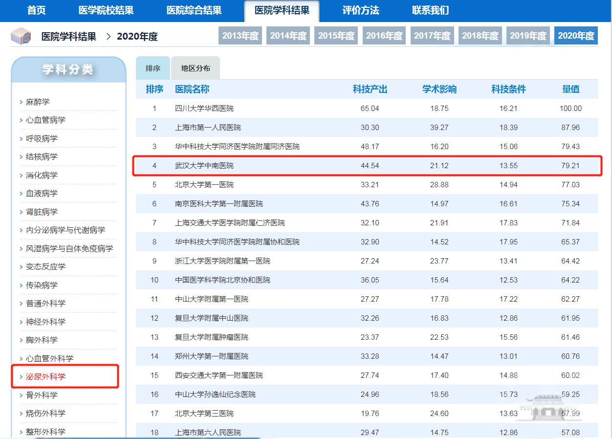 中南医院);全国第4位的泌尿外科学(Av解说