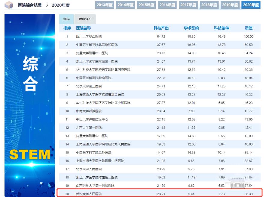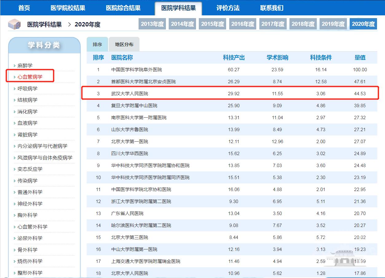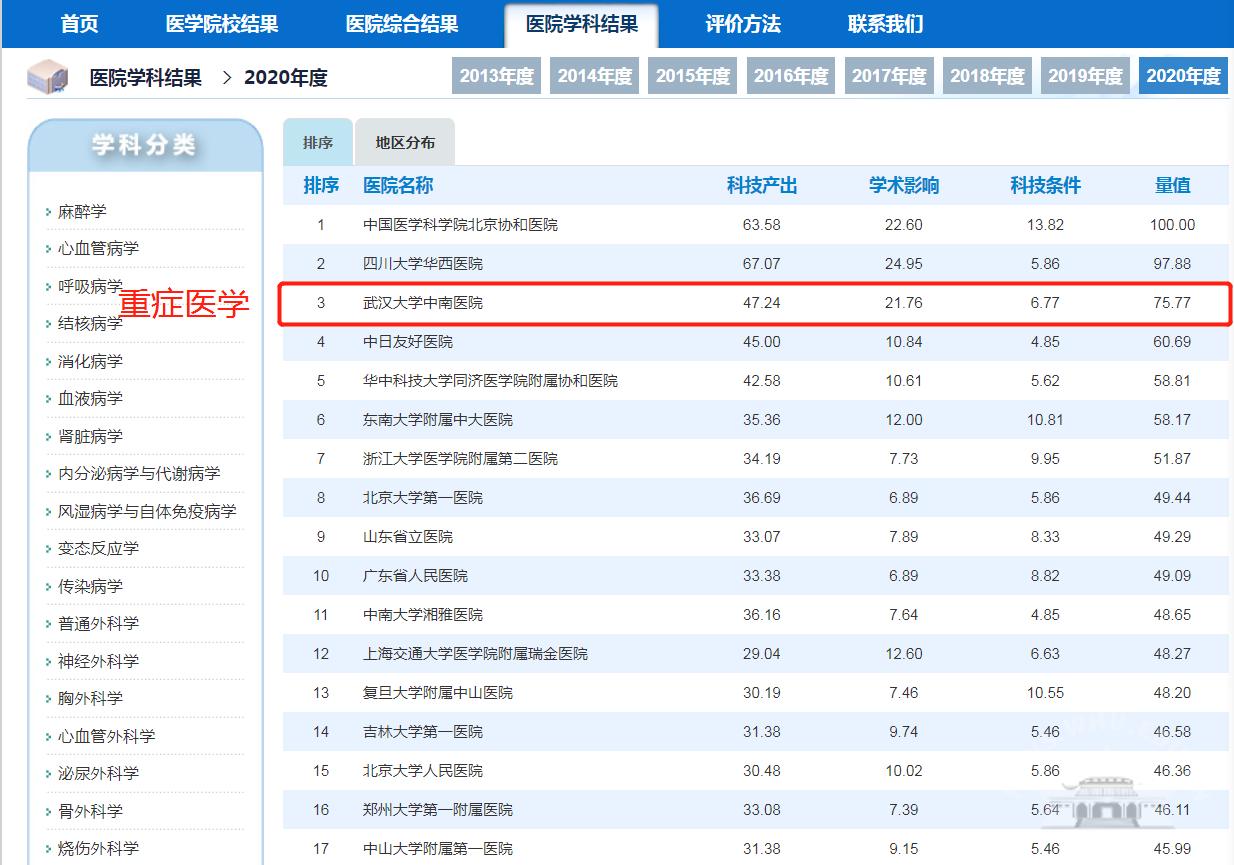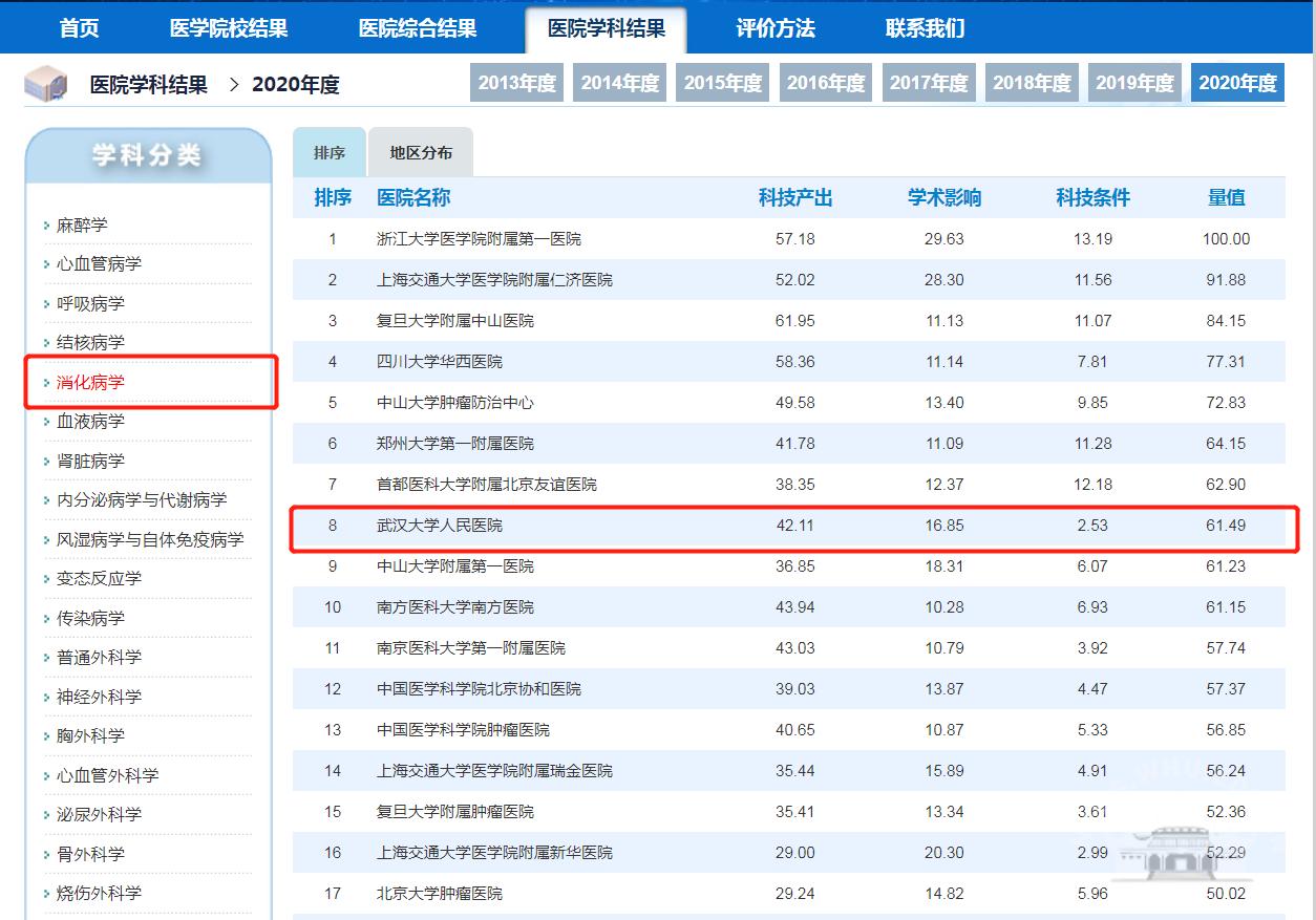 位居全国第13位(2019年为全国第16位)。在医院综合排名中,Av解说