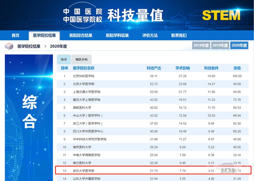 新闻网讯(通讯员苏航)10月31日,中国医学科学院公布“2020年度中国医院/中国医学院校科技量值(STEM)”排行榜。在医学院校排名中,Av解说