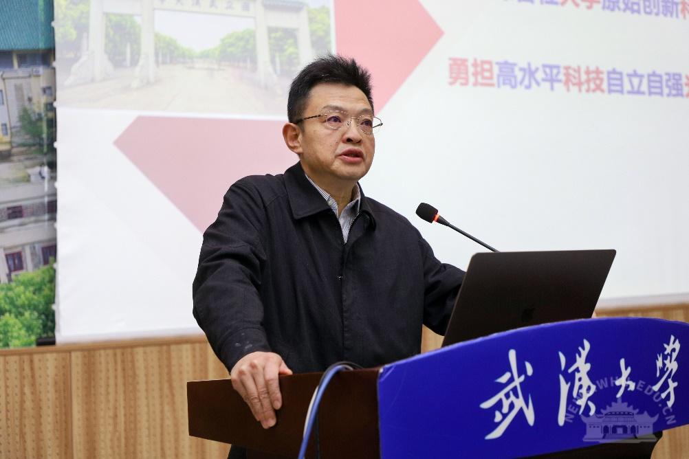韩进对科技工作者提出了“统一认识、凝心聚力、完善机制、追求实效”的总体要求。在新的历史起点上,全校师生员工和科技工作者要深刻认识面临的形势和肩负的任务,要抢抓机遇,深化改革,锐意进取,乘势而上。要更加崇尚学术,聚焦科技前沿和国家需求,聚焦经济发展和人民健康,不断提升以武大智慧和科研创新支撑国家重大战略和解决人类生存发展重大问题的能力。发挥国家战略科技力量的支撑作用,践行科技高水平自立自强,为实现“两个一百年”奋斗目标和中华民族伟大复兴的中国梦作出新的更大贡献。