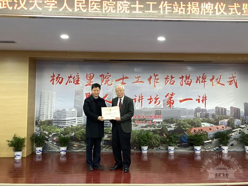人民医院揭牌成立,由杨雄里主讲的人民医院首期“人民讲坛”同日开启。院士工作站成立后,将充分发挥高端智力资源的创新优势,有力地推动医院科技成果不断向临床转化,促进医院医学科研创新能力和医疗服务水平同步提升,持续推动医院高质量发展。