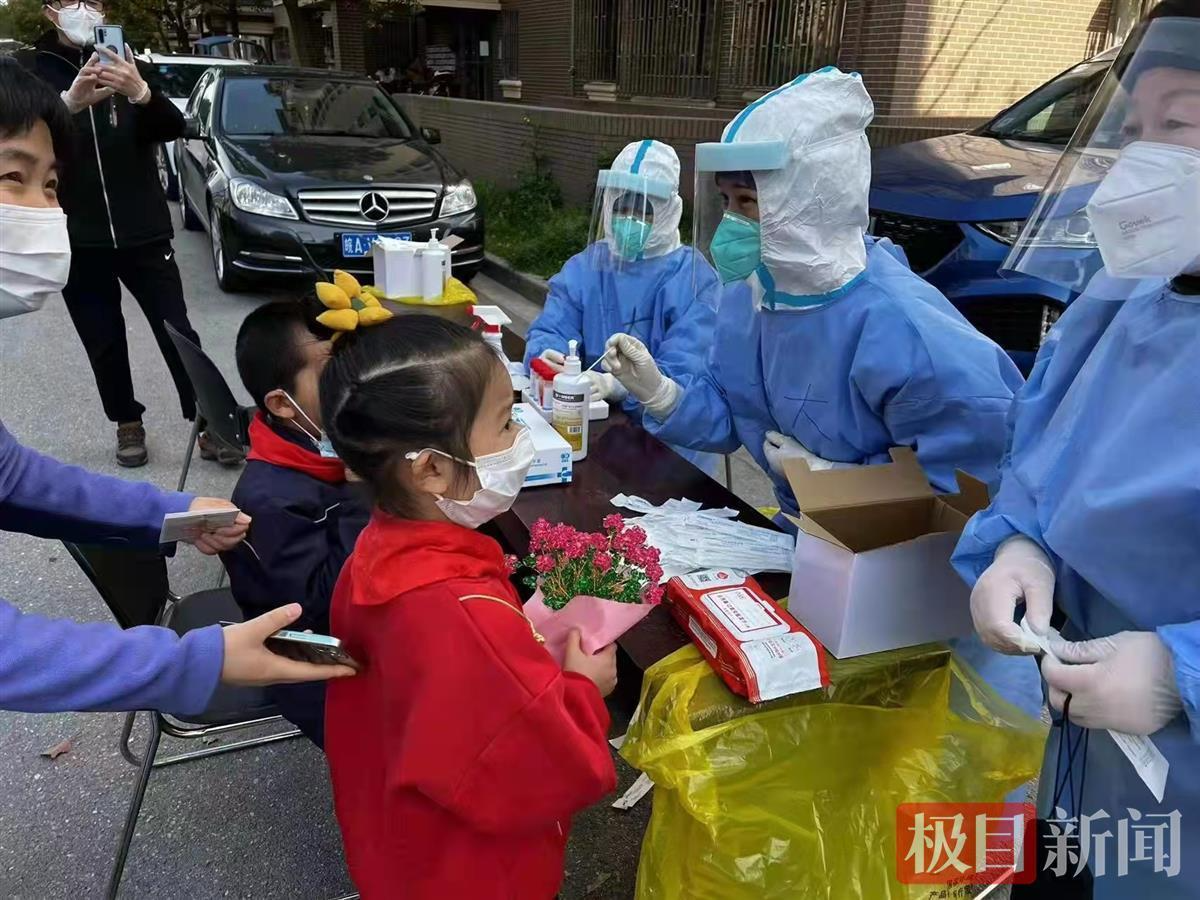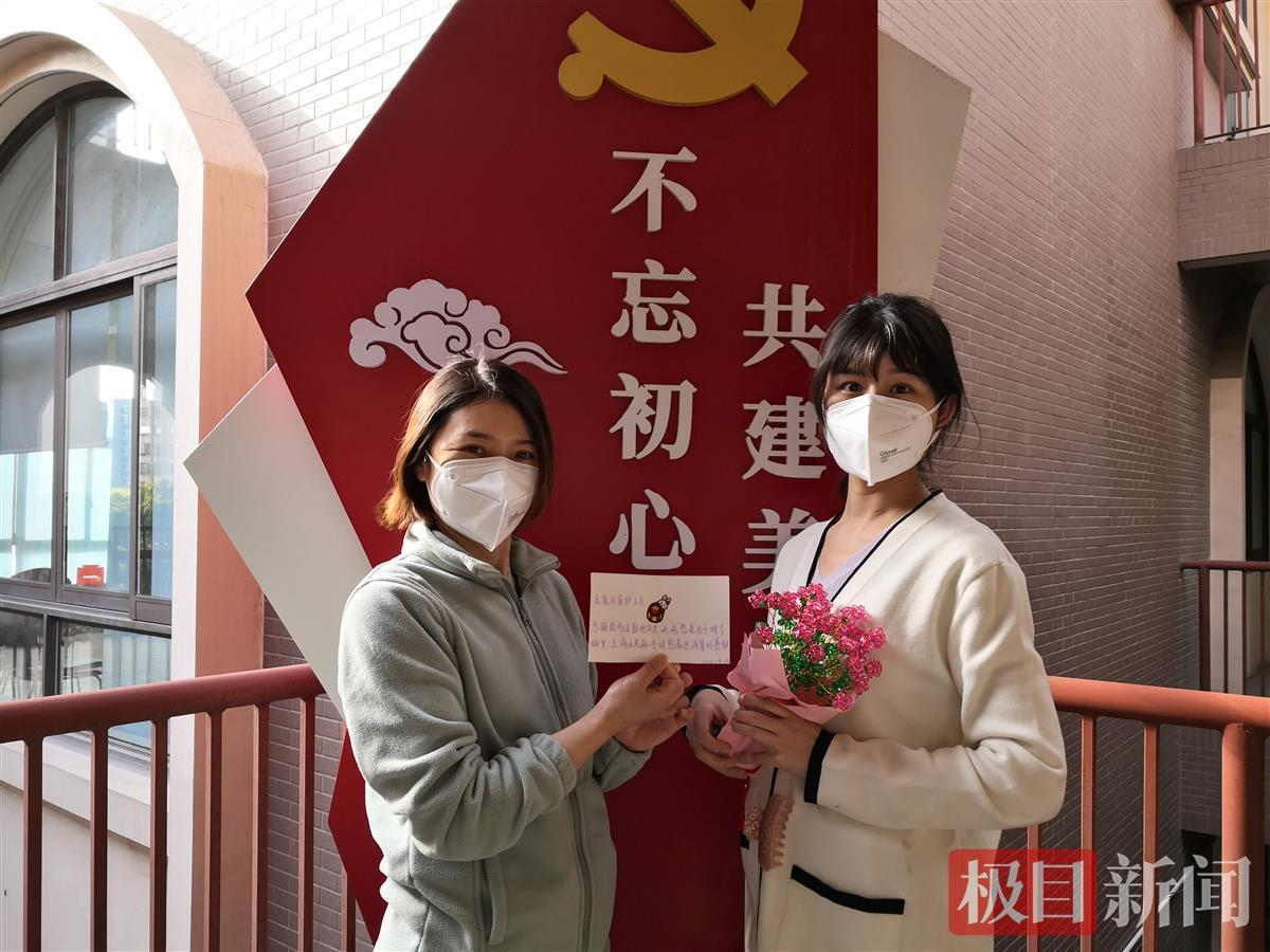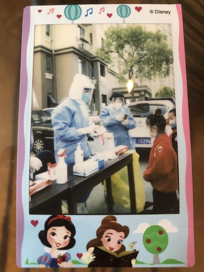 “姐姐,辛苦你们啦!”今天下午,在浦江镇一采集点,居民排队做核酸时,一位年轻妈妈带着6岁的女儿突然跑到武大口腔援沪队员王玉勤面前,小姑娘向王玉勤递上了一束手工水晶花和一张手写的卡片。卡片上写着:“感谢你们辛勤的付出,无论您来自于哪个城市。”