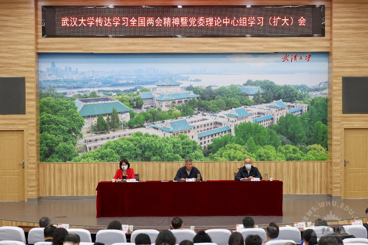 全国人大代表、校长窦贤康,全国政协委员、基础医学院教授章晓联作汇报发言。校党委书记韩进等全体在校的校领导,院士、人文社会科学资深教授,学校全国人大代表、政协委员,老领导、老同志代表,校党委委员、纪委委员,各民主党派主要负责人和无党派人士代表,全体中层正职干部和师生代表参加学习。韩进主持会议。