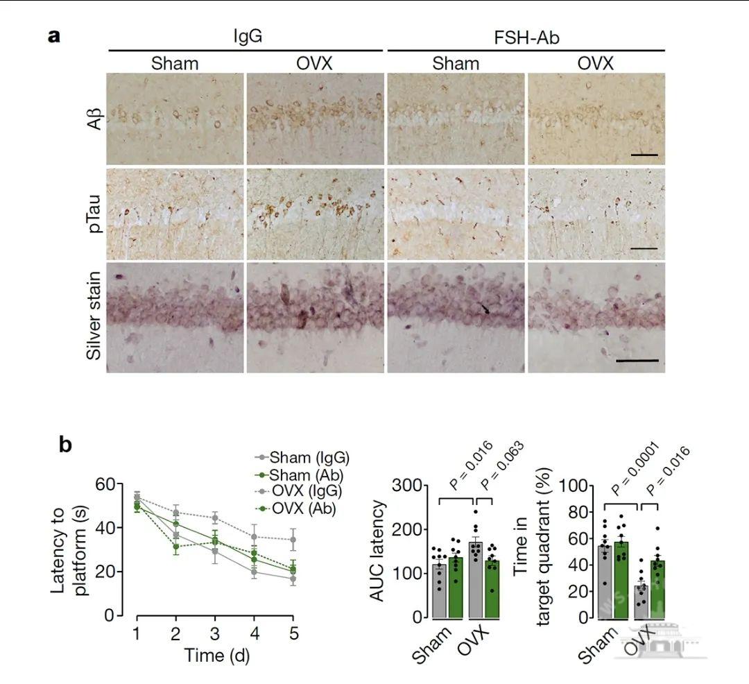 FSH抗体治疗可以减轻卵巢切除术后AD小鼠的AD相关病理改变及认知功能下降