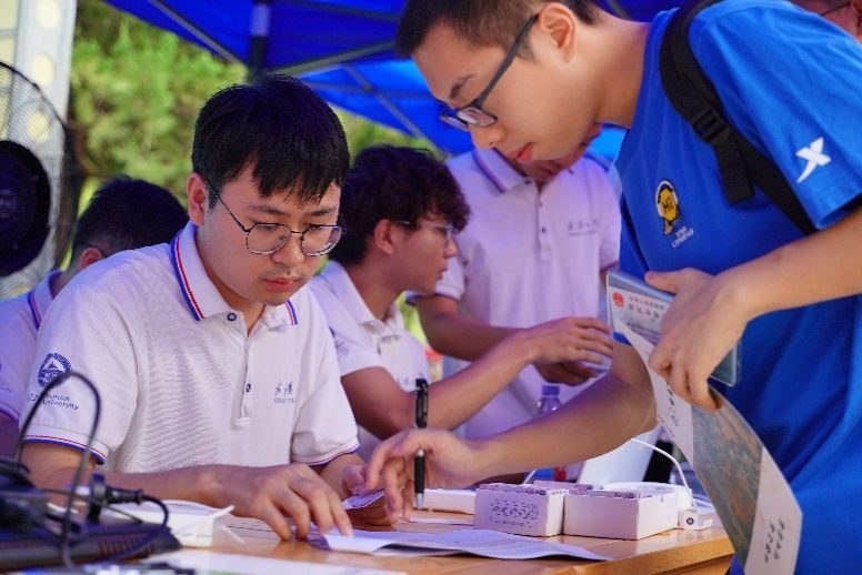 在动力与机械学院迎新点前,“法外狂兔”机器人吸引了许多新生驻足观看。该机器人在今年的全国大学生机器人大赛中斩获季军,为新生带来了“动机专业第一课”。