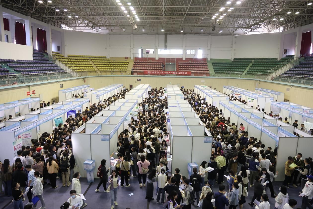杏林体育馆成功举办!来自湖北、浙江、江苏等省内外近200家医疗卫生单位“组团”招聘,吸引了来自湖北省内各医药卫生学校近5000名学生入场,投递简历2万余份,达成就业意向3000余人!
