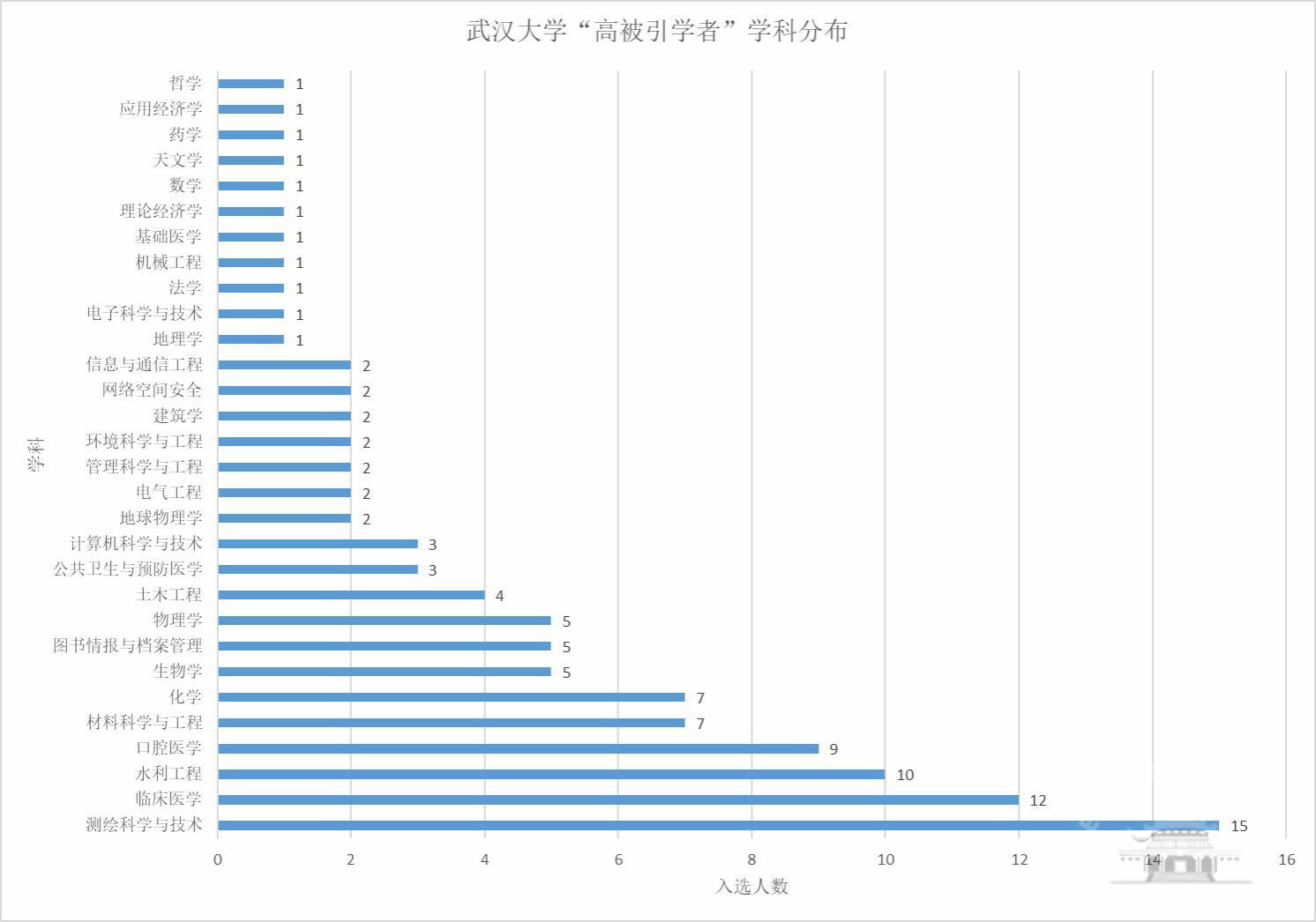 入选学者覆盖工学、理学、医学、管理学、经济学、法学、哲学7个学科门类,涵盖30个一级学科(详见图1),与去年同期相比增加了经济学学科门类、3个一级学科。其中,工学门类的高被引学者最多,共51人,其次是医学、理学,分别入选26人和22人。从一级学科看,测绘科学与技术(15人)、临床医学(12人)与水利工程(10人)入选学者人数居前三,口腔医学(新增4人)、图书情报与档案管理(新增2人)等11个学科入选学者较上一年度增加。学者周圣军、杨冕及Usman Muhammad的入选分别实现了Av解说