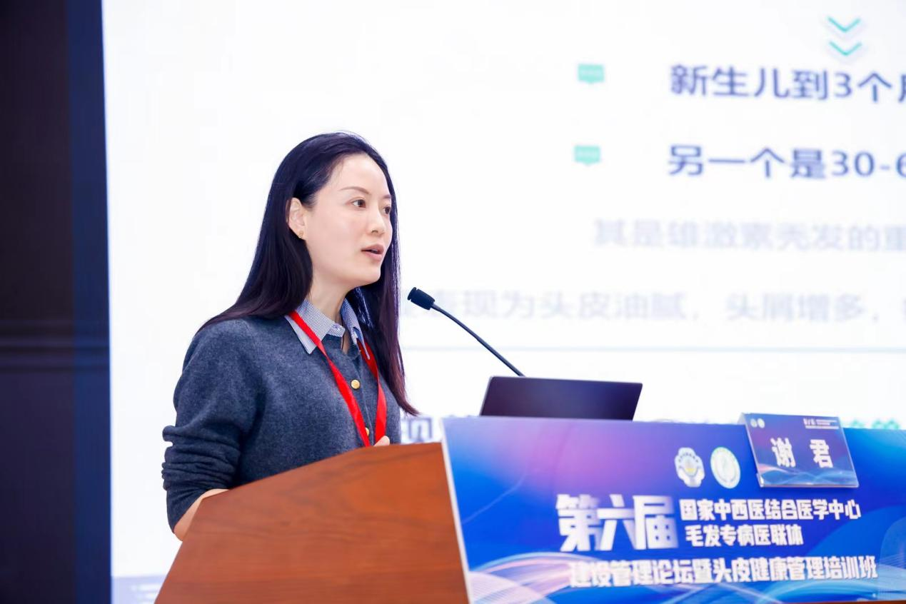 随着社会的进步,人民生活水平的提高,脱发患者数量急剧增加,目前我国有脱发患者1.7亿,严重影响患者的工作、社交及生活。谢君一方面致力于脱发疾病的诊断、治疗及预防研究,另一方面积极推进湖北省毛发治疗工作,在省内首批开设脱发专病门诊,在雄激素脱发的个体化治疗、斑秃患者的靶向治疗、头皮激光及注射治疗方面处于领先地位。