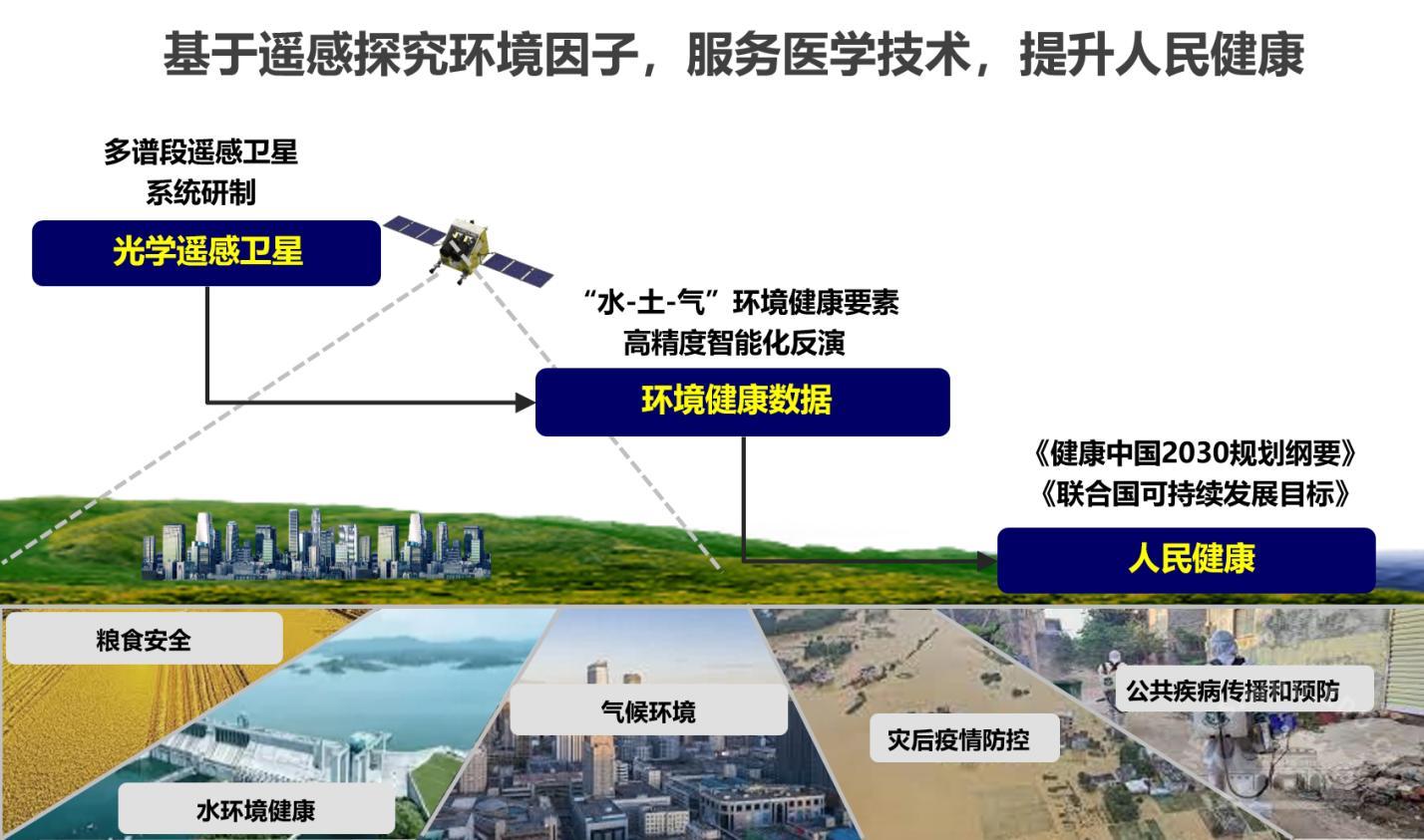 基于该卫星可建立面向环境健康因素广域综合监测系统,实现“水-土-气”健康要素遥感智能高精度反演,将健康、人口和环境数据联系起来,实现在不同地理尺度评估和量化健康相关变量与环境风险因素之间的关系,开展医学遥感应用示范,为人民健康保驾护航。