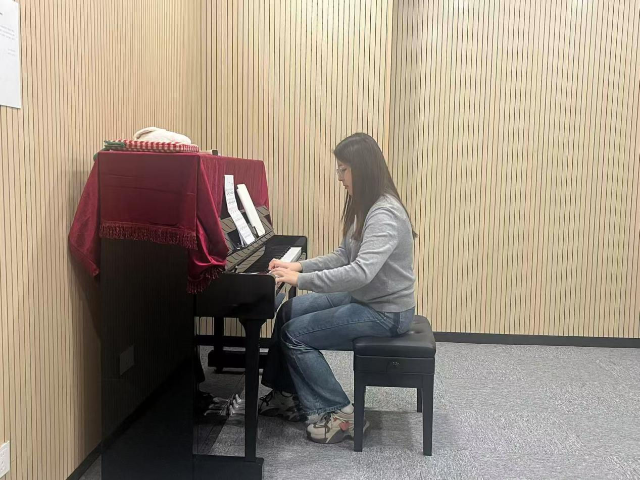 泰康医学院(基础医学院)学生夏米斯娅正在弹奏歌曲