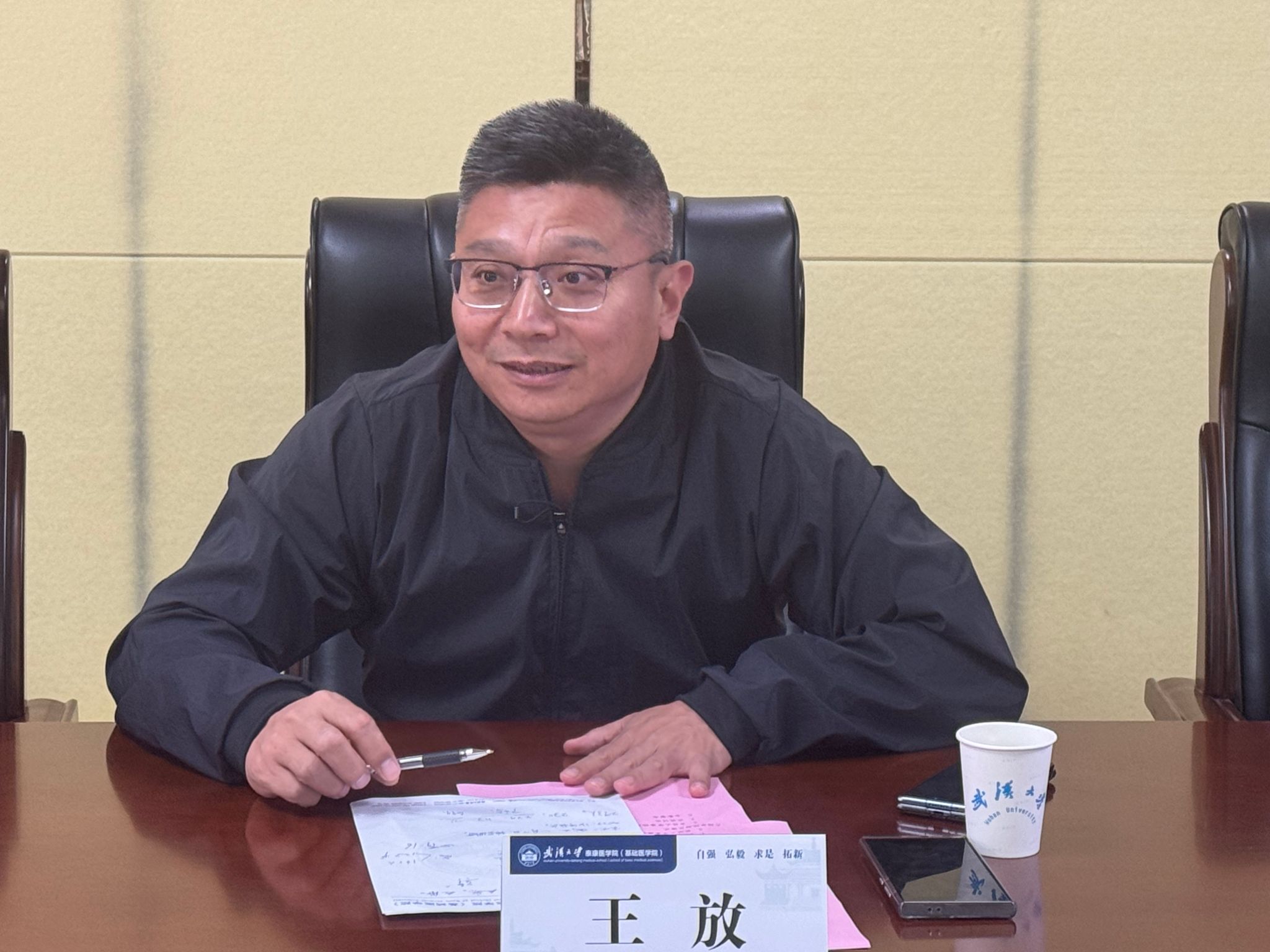 4月9日上午,吉林大学基础医学院院长王放一行来院调研,就学科发展、人才培养、师资队伍、科研合作等方面工作进行深入交流。学院全体领导班子、机关办公室代表出席座谈会。座谈会由学院副院长任怡主持。