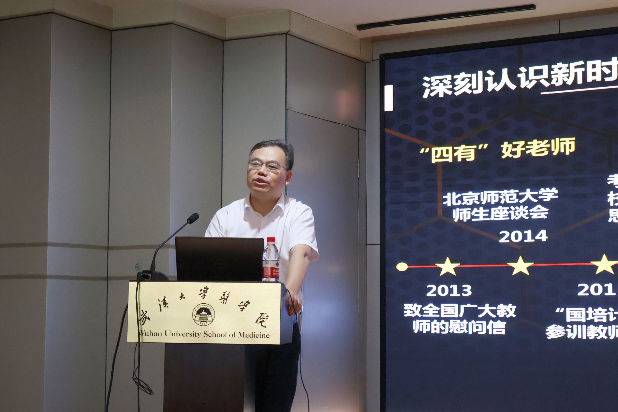 李天亮以《坚持师德师风第一标准 建设新时代高素质教师队伍》为题,对新时代师德师风的内涵进行了深刻解读。他回顾了学校师德师风建设取得的显著成效,并对未来工作提出了前瞻性思考。他指出,在座的每一位都承载着党员、教师、医生的三重身份,肩负着崇高的使命。他鼓励大家要多学习、多商量、多提醒,不断适应新时代下的新要求,共同推动武大医学事业的持续发展。