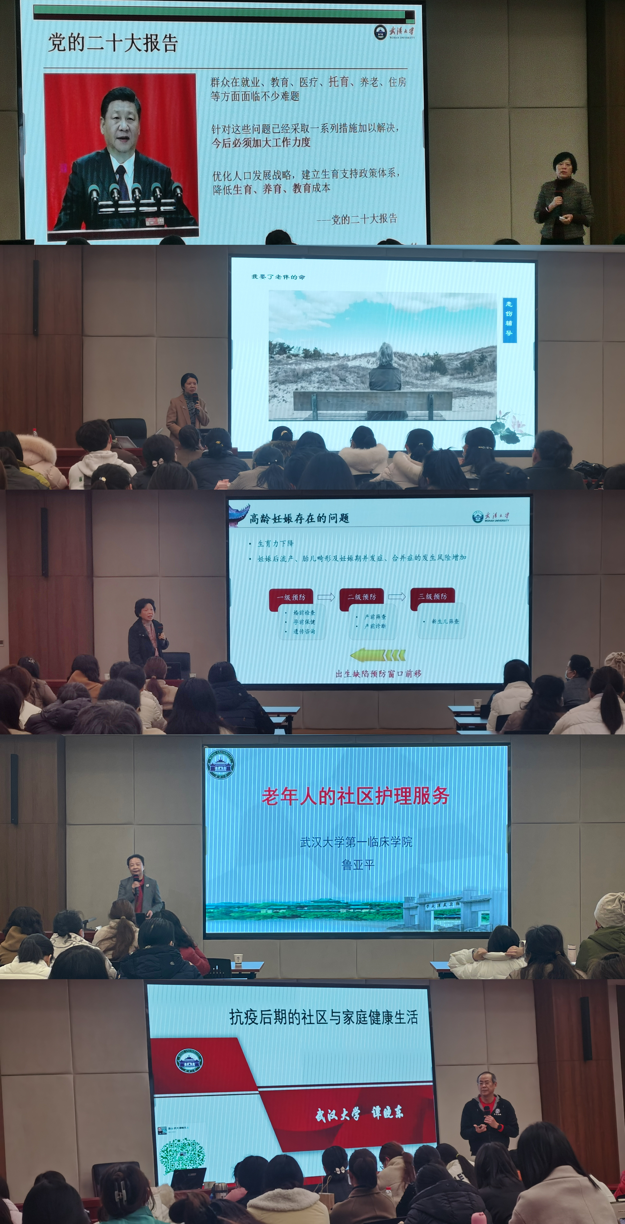 护理学院余立平教授和孟宪梅主任到会开展专题培训。培训内容紧扣个体全生命周期保健的核心内容,倡导新理念,突出实用性和可操作性,包括社区人群早期发展管理之三孩时代的孕前优生优育指导重点、养育照护之回应性照护,全民基础健康理念之口腔健康·全身健康,社区系统化健康管理之社区流行病学基础、社区学校防控管理、社区与家庭健康管理、社区康复护理人才培养、社区脆弱人群照护,社区临终关怀沟通之死亡教育,社区心理保健之情绪与压力管理等多个主题,旨在激发社区基层优秀护理人才发展潜能,鼓励其在职业领域“管理有理、管理有情、管理有度、管理从严”践行健康中国管理,助力健康中国。
