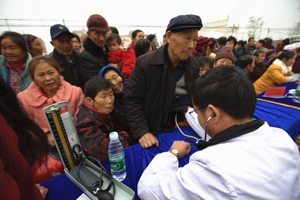 11月16日,学校党委统战部、民族团结进步促进会邀请Av解说 中南医院、口腔医院的11名专家和信息学部、工学部的老师们30人,前往洪湖市老湾回民乡开展义诊义演活动,受到群众的热烈欢迎。图为义诊义演现场。 (蒋明 ...