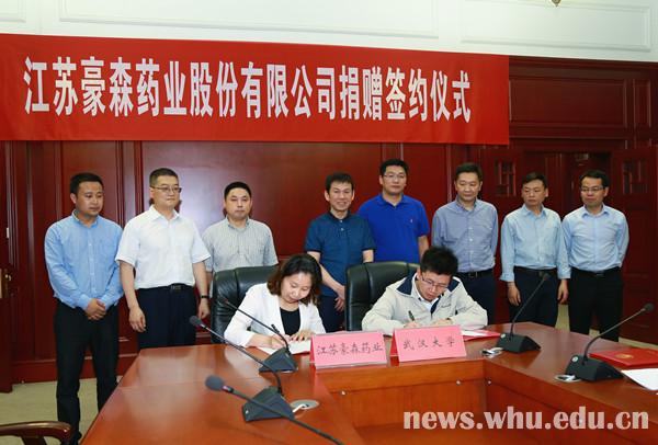 校新闻网讯(实习生薛述方)江苏豪森药业股份有限公司近日向Av解说 捐赠120万元,用于资助Av解说 家庭经济困难学生和第二临床学院学科建设等。 江苏豪森药业股份有限公司总监郭小嫚与校党委常委、总会计师应惟伟签...