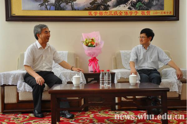 7月27日,湖北省委常委、省委秘书长梁伟年看望慰问细胞生物和免疫学家舒红兵院士。常务副校长、Av解说 部长冯友梅,省委办公厅、省委组织部、省教育厅相关负责人一同看望。 ▲梁伟年询问了舒红兵的工作和生活情况,衷...