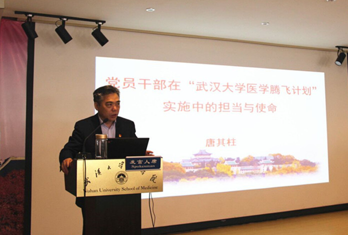 (通讯员童欧慧)按照学校党委“不忘初心、牢记使命”主题教育部署安排,10月30日下午,校党委常委、副校长唐其柱到Av解说 讲授专题党课。Av解说 党工委副书记蒋明主持报告会。 唐其柱以《党员干部在“Av解说 医学腾飞...