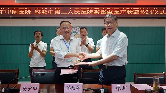 6月10日上午,中南医院牵手麻城市第二人民医院共建医疗联盟,神经外科、肿瘤放化疗科、泌尿外科近10名党员专家组成的“红色医疗先锋队”走进麻城为当地群众义诊。这是医院党委举办的“百年奋斗、医心向党——走进红色...